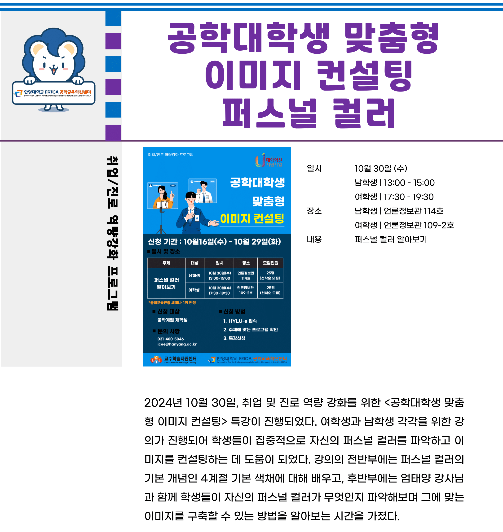 2024 취업/진로 역량강화 프로그램_공학대학생 맞춤형 이미지 컨설팅 - 퍼스널 컬러